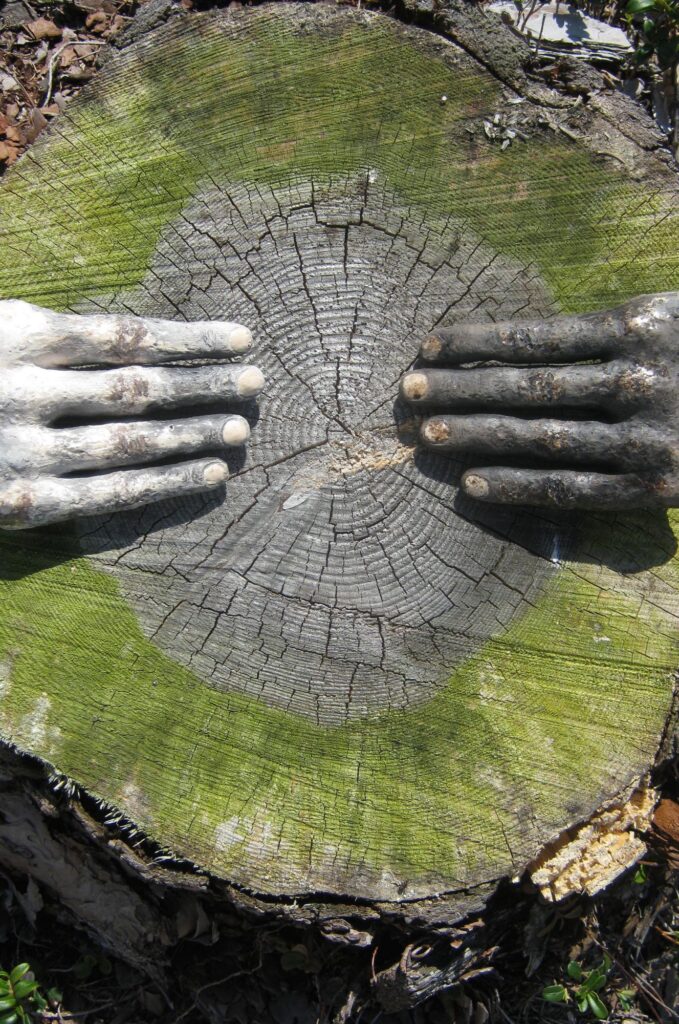 In the collection of works of the Singing Land exhibition, Jonna Salonen have carved and built works that are based on her own life-long relationship with nature and concern about the fading away of nature. By sculpting, she try to aim for the existence of nature and through it the understanding of humanity, as well as to express the importance of nature in our humanity. Simple handmade tools and natural materials inspire and interest Salonen in building sculptures. The works in the exhibition are mainly carved from wood, sheep’s wool, raku ceramics and recycled materials.